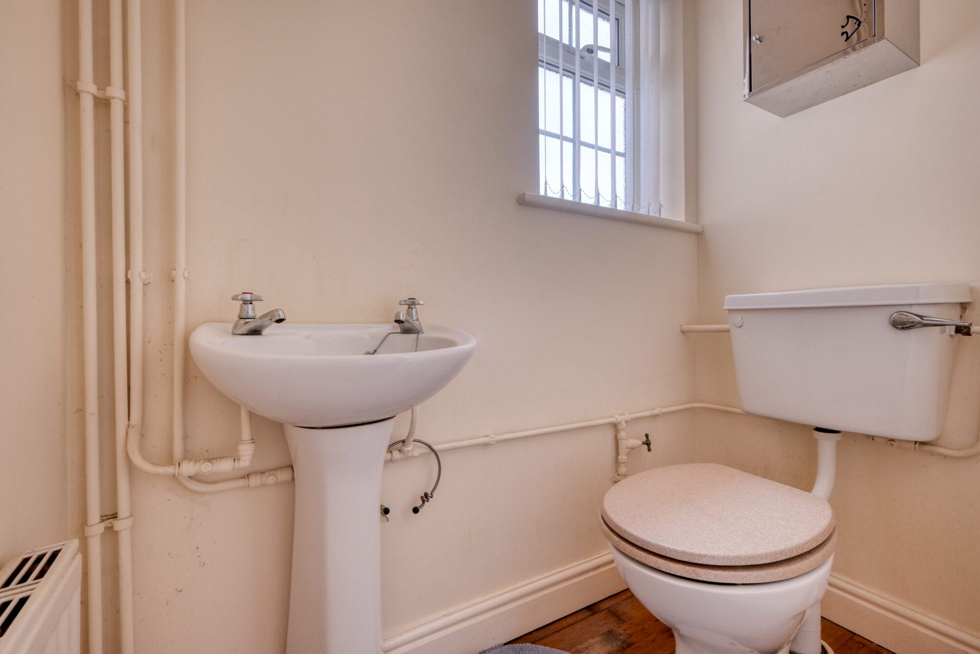 Upstairs are four bedrooms, three of which benefit from built in storage, and a family bathroom. Bedrooms two and three overlook the rear garden, and bedroom three benefits from dual-aspect windows. The bathroom is finished in a neutral style and includes a bath with overhead shower, WC and sink.
